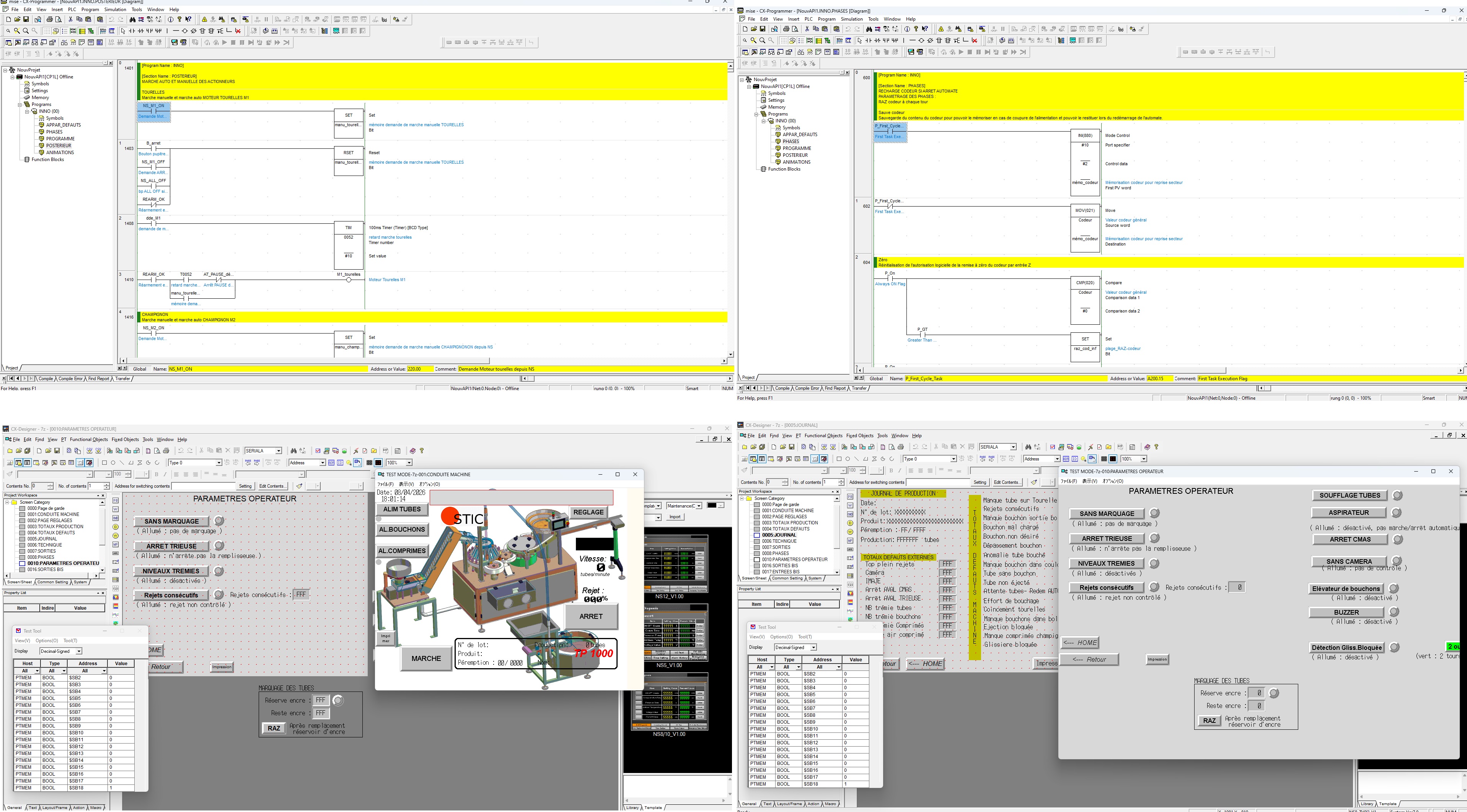 I developed and commissioned an automated filling machine using Omron PLC and HMI (CX-One environment), integrating process control with motion and speed synchronization. The system included configuration and control of a Yaskawa VFD to regulate motor speed for precise filling operations, along with the implementation of encoders to ensure accurate positioning and timing of the filling sequence. The PLC program was designed to manage the full operational cycle, including bottle detection, positioning, filling control, and system interlocks, while the HMI provided an intuitive interface for parameter adjustment, monitoring, and fault diagnostics. This project required tight coordination between variable speed control and encoder feedback to achieve high accuracy and repeatability in the filling process.